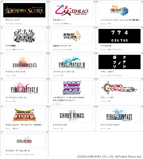 「SQUARE ENIX MARKET」では、以下16タイトルが提供されております。今後も随時追加していく予定です。
