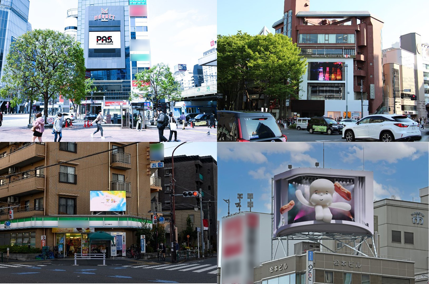 パス・コミュニケーションズは、屋外大型ビジョンに関わる様々なサービスを提供しており、その一つとして渋谷、表参道などの首都圏エリアを中心に、北海道から沖縄まで全国150基以上の大型ビジョンをメディアレップしています。